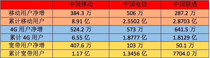 中國移動(dòng)寬帶用戶持續(xù)增長(zhǎng) 電信聯(lián)通各有所長(zhǎng)